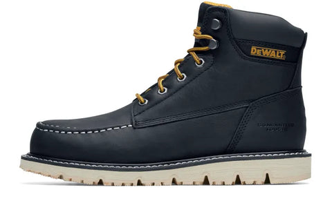 These x DEWALT® boots feel athletic but protect like armor. Designed with water-resistant leather, this slip-resistant shoe protects against spills while staying breathable. A nano-composite safety toe keeps you protected without weighing you down. The Easy Clean, clog-resistant outsole grips slippery surfaces and shrugs off debris, while TRIPGUARD™ tech helps you move smoothly between uneven floors. With a padded collar and tongue for extra comfort, this non-slip work shoe works as hard as you do, whether you're on the factory floor or in the shop.