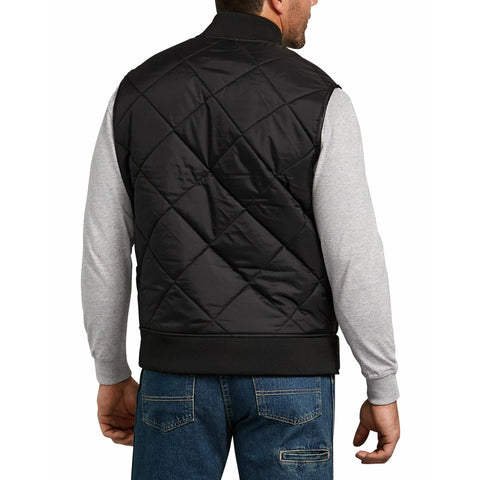 The Dickies Diamond Quilted Vest features a water-resistant fabric and finish that fends off the cold. Hand warmer pockets add another cozy detail.