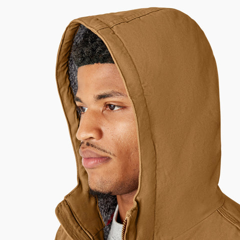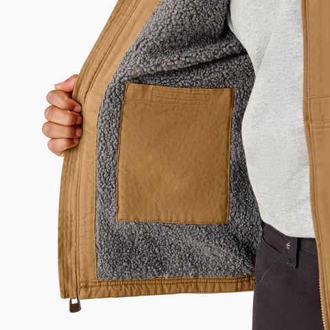 Made from 100% cotton duck canvas, this jacket’s exterior offers plenty of durability while its comfortable high pile fleece interior ensures warmth through the winter months. The duck canvas work jacket has a relaxed fit for easy layering, secure pockets throughout, a longer back hem for coverage, and triple needle reinforced stitching.