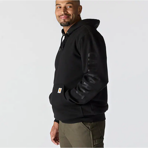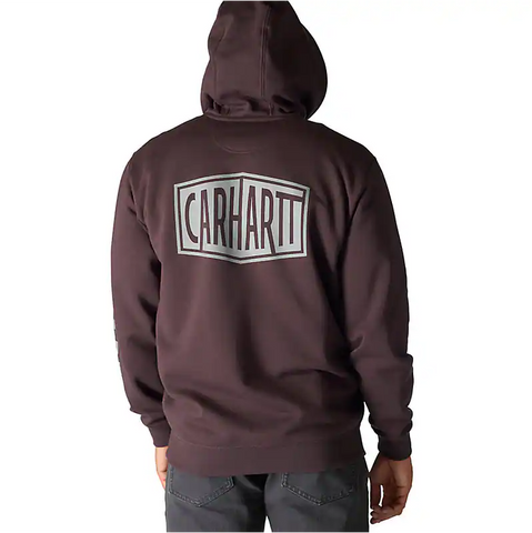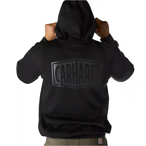 Versatile midweight warmth and familiar cotton-blend fleece comfort. This men's graphic hoodie has the added benefit of Carhartt Rain Defender® for resisting damp weather. A loose fit allows for easy layering and unrestricted movement.